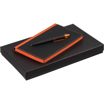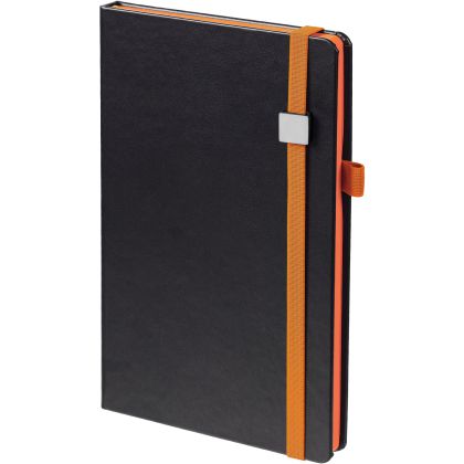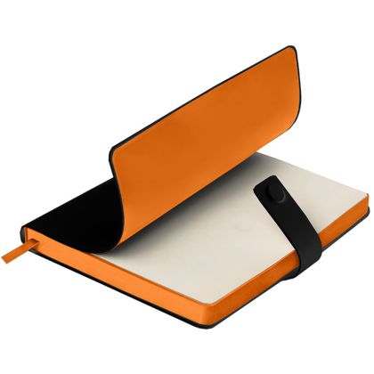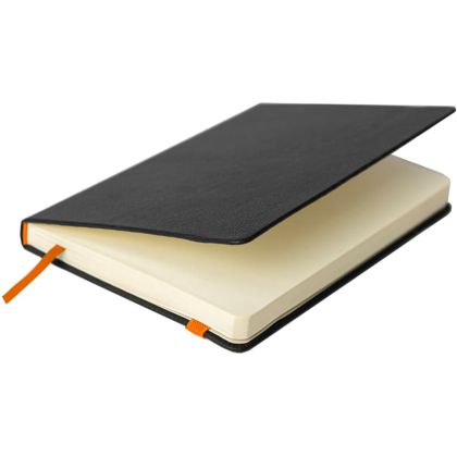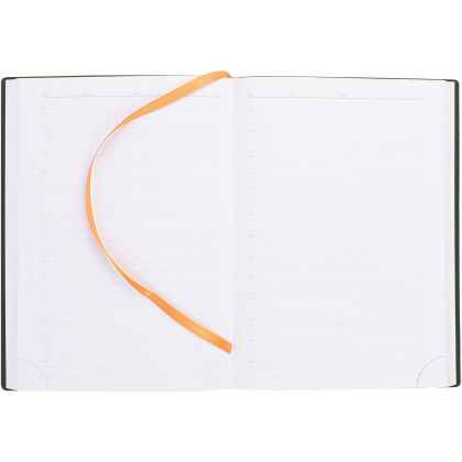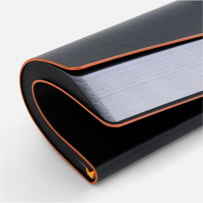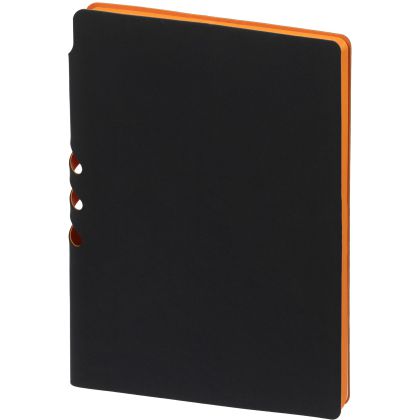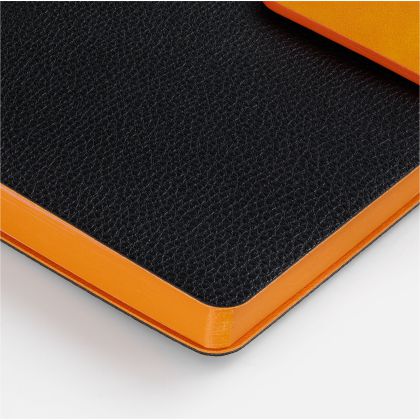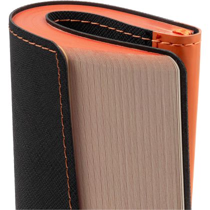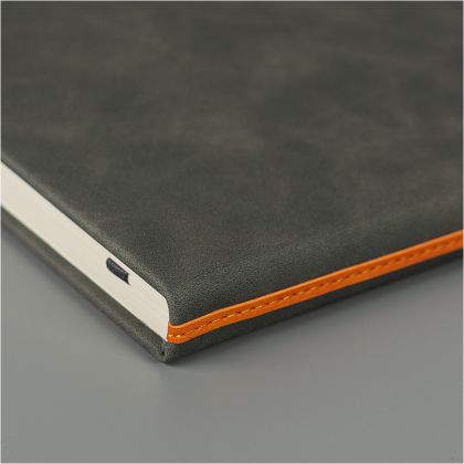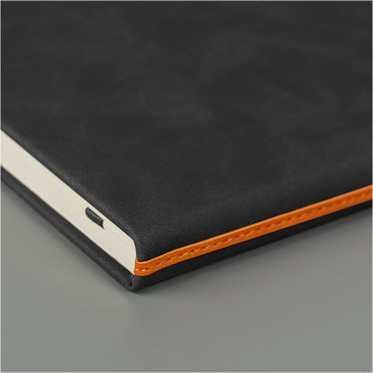 Ежедневник с гибкой обложкой и покрытием софт-тач недатированный А5 черный с оранжевым срезом