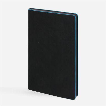 Ежедневник с гибкой обложкой и покрытием софт-тач недатированный А5 черный с синим срезом