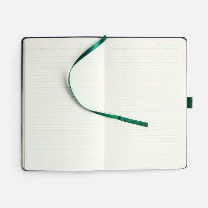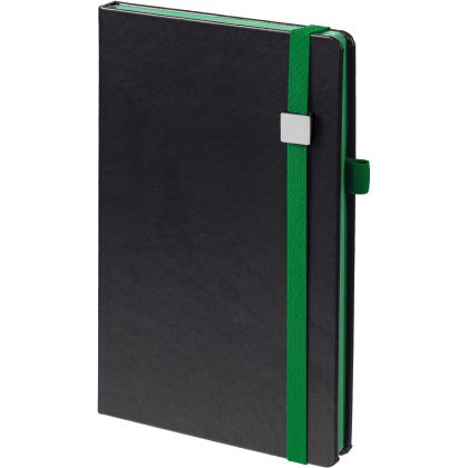 Ежедневник с гибкой обложкой и покрытием софт-тач недатированный А5 черный с зеленым срезом