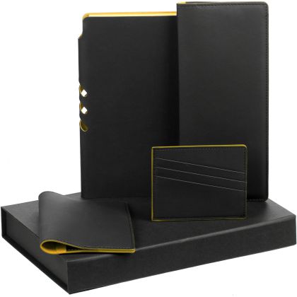 Ежедневник с гибкой обложкой и покрытием софт-тач недатированный А5 черный с желтым срезом
